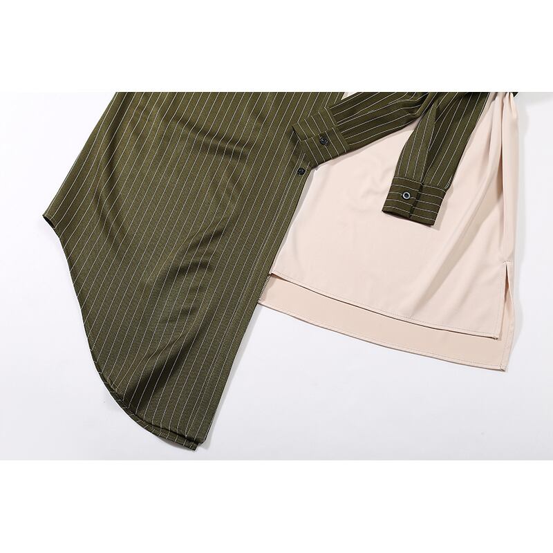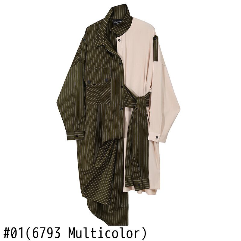 新作 女性ヒットカラープラスサイズ秋の非対称シャツドレス長袖ストライプサッシュスタイリッシュなドレスローブ6793
