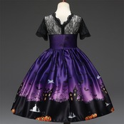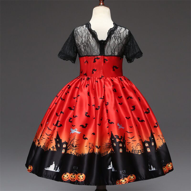 新作 ハロウィン ガールズカーニバルコスプレパーティー ファンシードレスアップチルドレン キッズクリスマスレースパンプキンプリント
