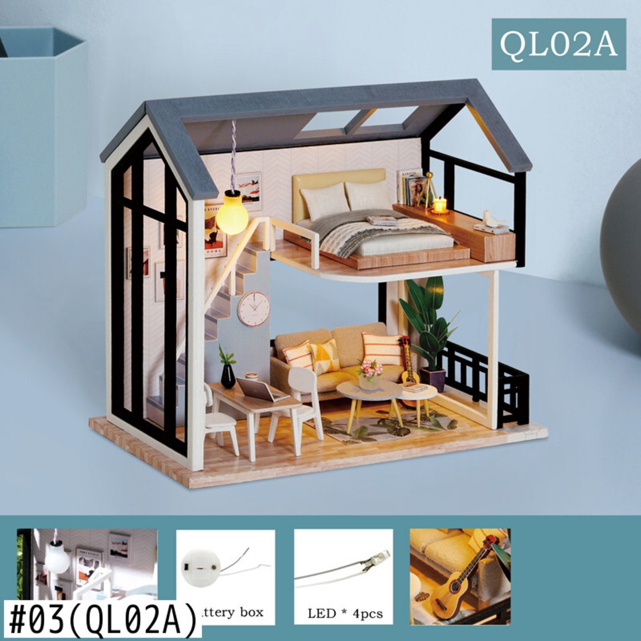 新作 CUTEBEEDIYドールハウス木製ドールハウスミニチュアドールハウス家具キットLEDおもちゃ子供用クリスマスギフトQL01