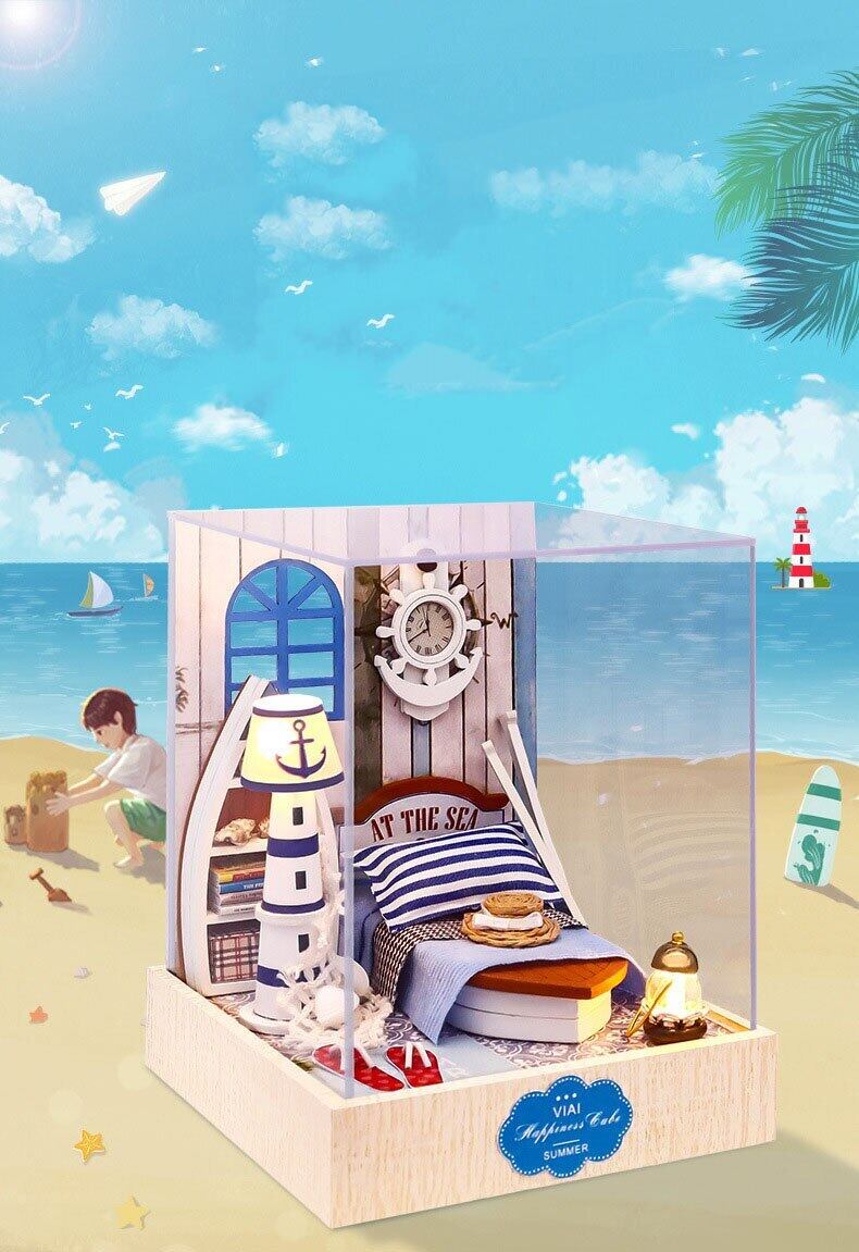 新作 LEDキット付きDIY木製ドールハウスミニチュア家具ドールハウス組み立て教育玩具子供誕生日プレゼントカサ