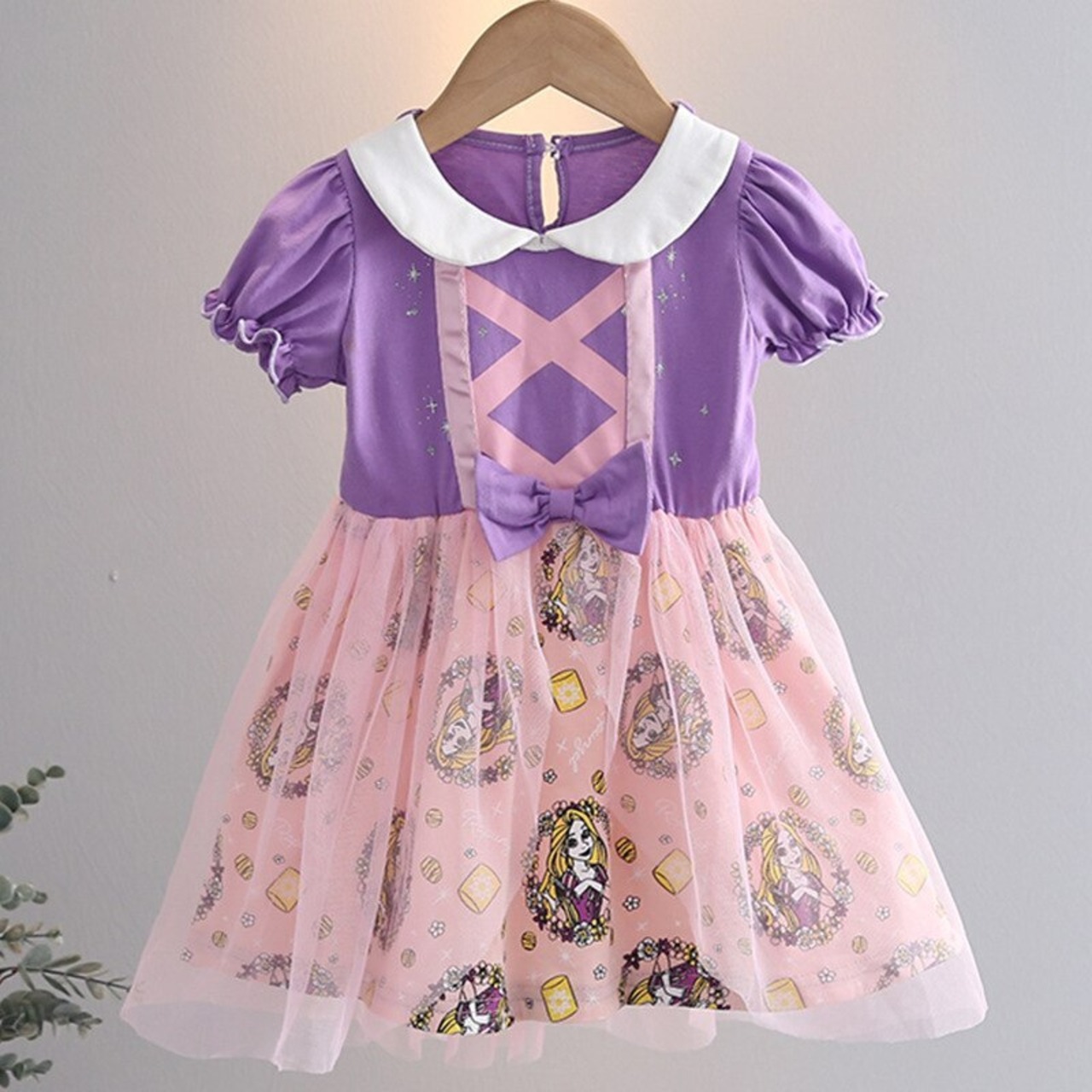 新作 サマーファンシーガールリトルマーメイドラプンツェルエルザキッズバースデーパーティーベル漫画ミディドレスアップ