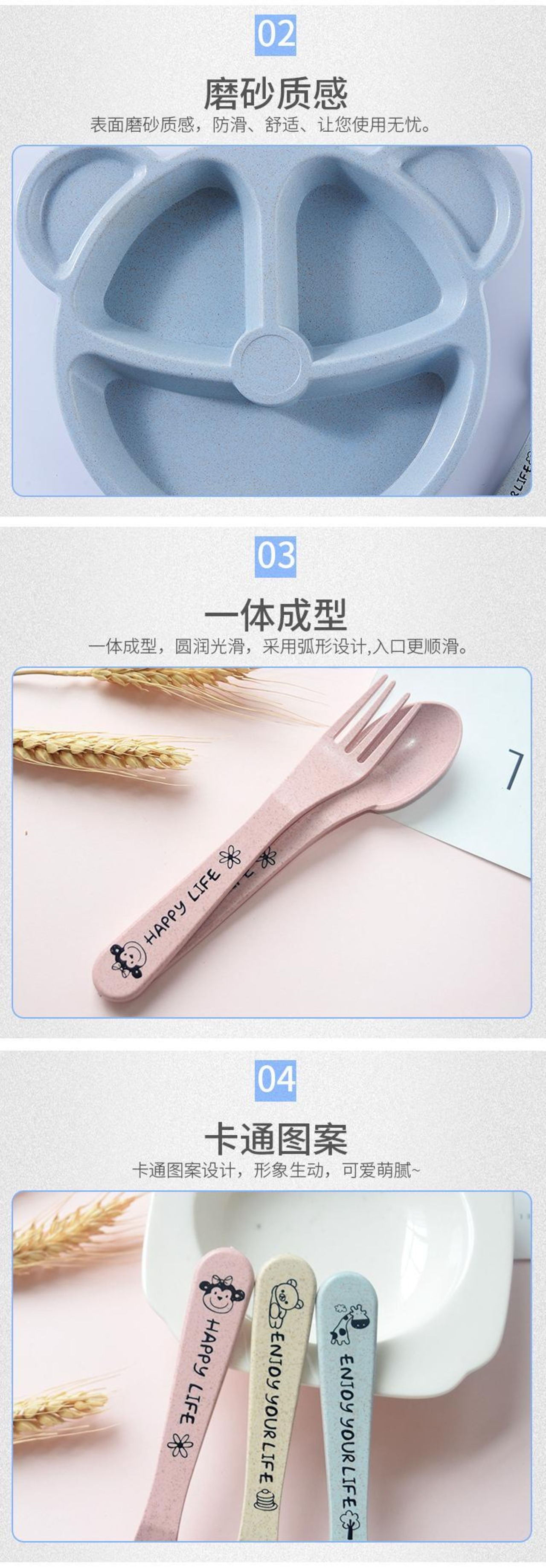 新作 3ピースセットベビー小麦ストロー漫画食器キッズかわいいプレート食器セットかわいいクマベビー料理 おままごと
