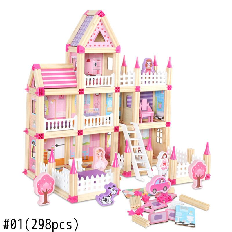 新作 128-298pcsDIYドールハウス手組み立てハッピーファミリービルディングブロックセットDIY教育玩具キッズガールズギフト おままごとTake_care_of_yo6336837475