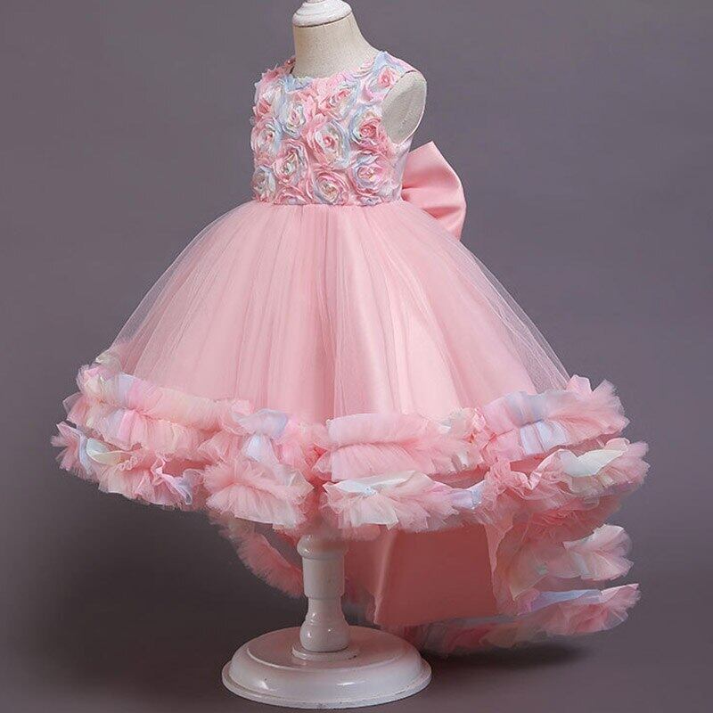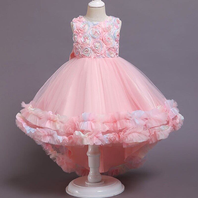 新作 花の赤ちゃんの女の子のドレス結婚式のパーティーの子供たちのレースのビーズのガウンの子供たちのドレス女の子のmal服