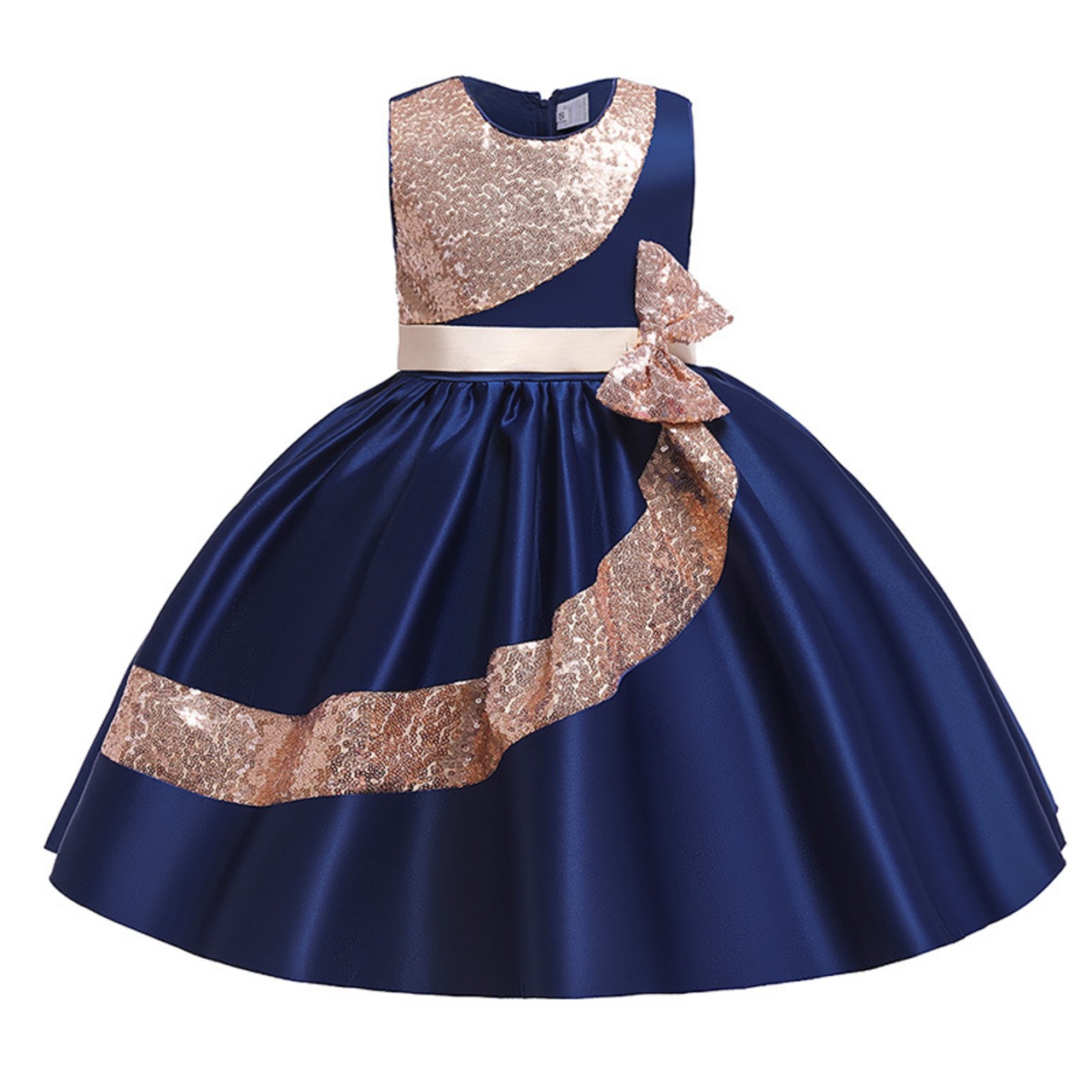 新作 ページェントキッズパーティー服女の子子供弓誕生日ドレススパンコールドレスVestido女の子服