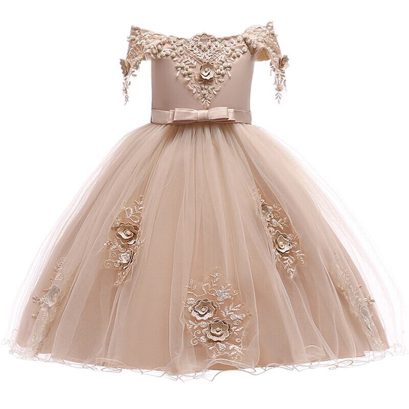 新作 レースフラワーガールドレスウェディングバースデーパーティービーディングキッズドレスガールズチルドレンクリスマス