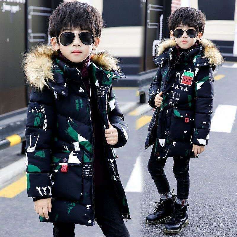 新作 5-14歳ティーンズビッグボーイズガールズウィンターカモフラージュコートファーフード付きジャケット2021キッズウォームフリースアウターウェアチルドレンズパーカー