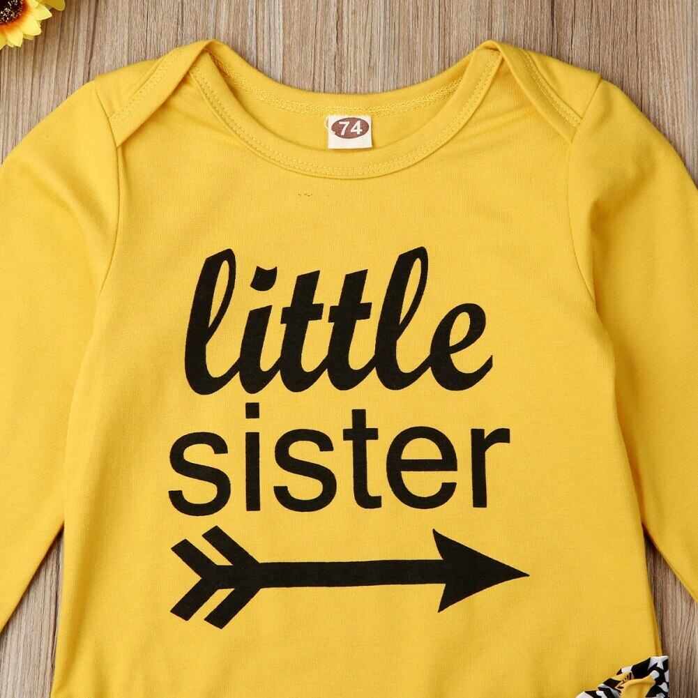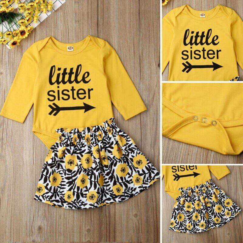 新作 0-24M生まれの幼児の女の赤ちゃんセットレターシスターロンパース+フラワーチュチュスカート秋春の女の赤ちゃん