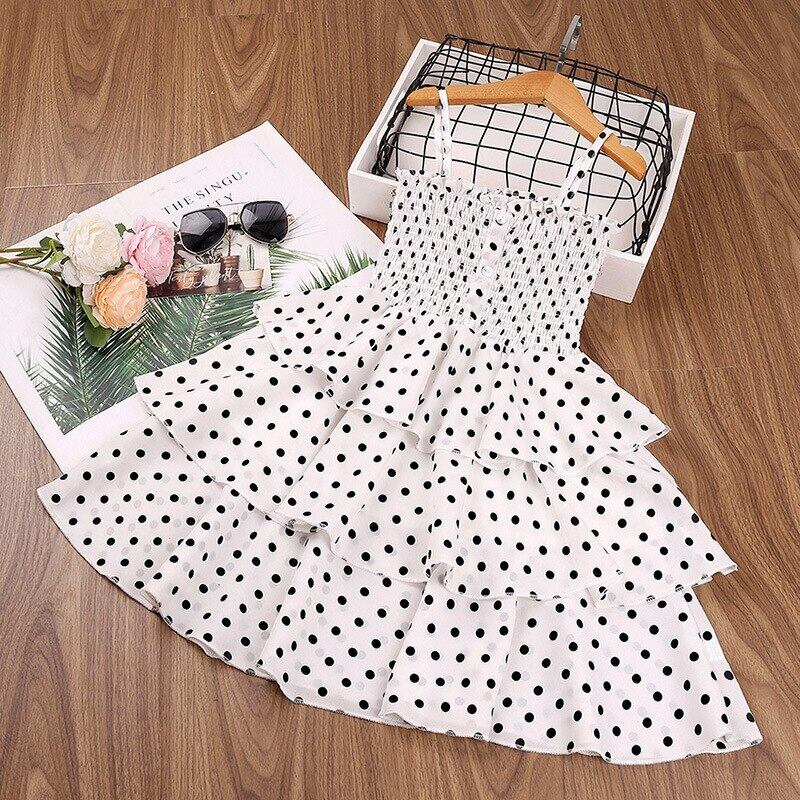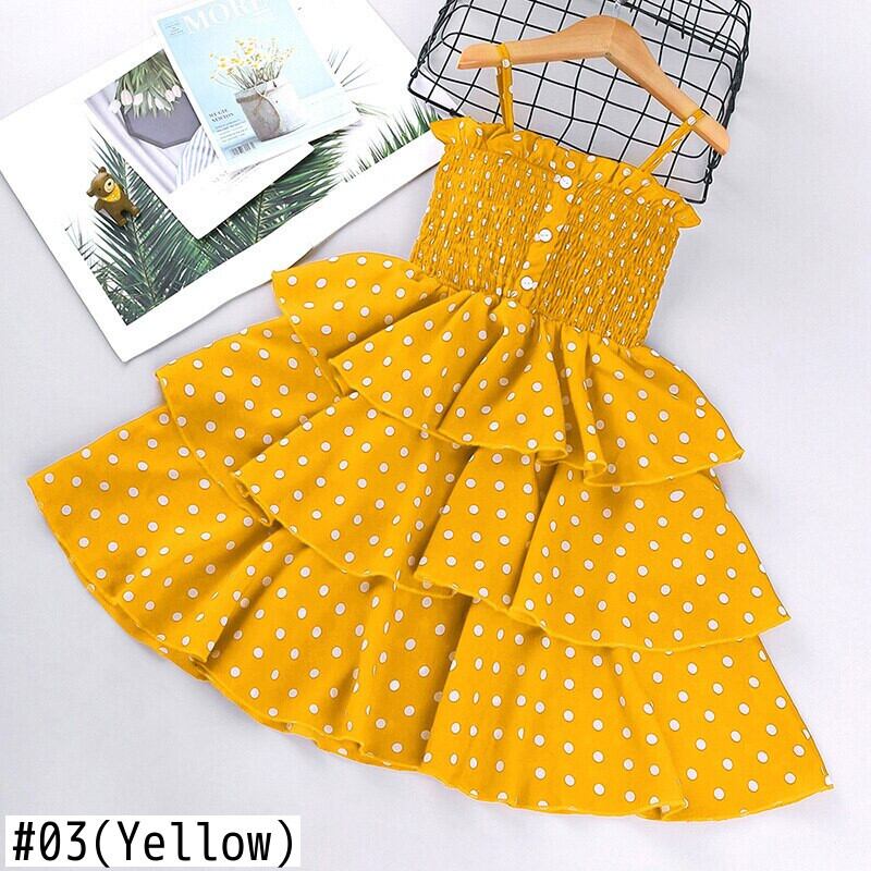 新作 2021ガールズサマーソフトシフォンベストドレスベビーキッズドットサスペンダードレス子供服3-12歳