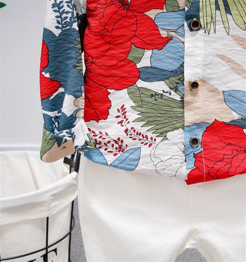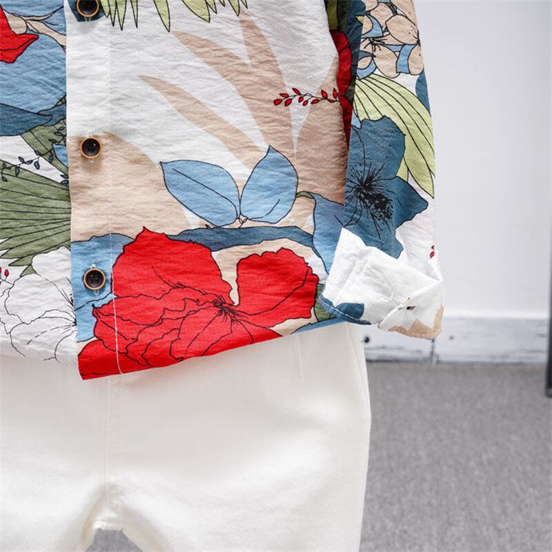 新作 キッズボーイズセット2021ルーズ春秋フラワーシャツホワイトパンツキッズボーイズスーツ24 68年