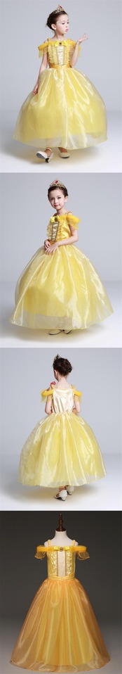 新作 女の子ベルドレス美女と野獣の子夏春キッズ黄色のイブニングドレスガウン幼児