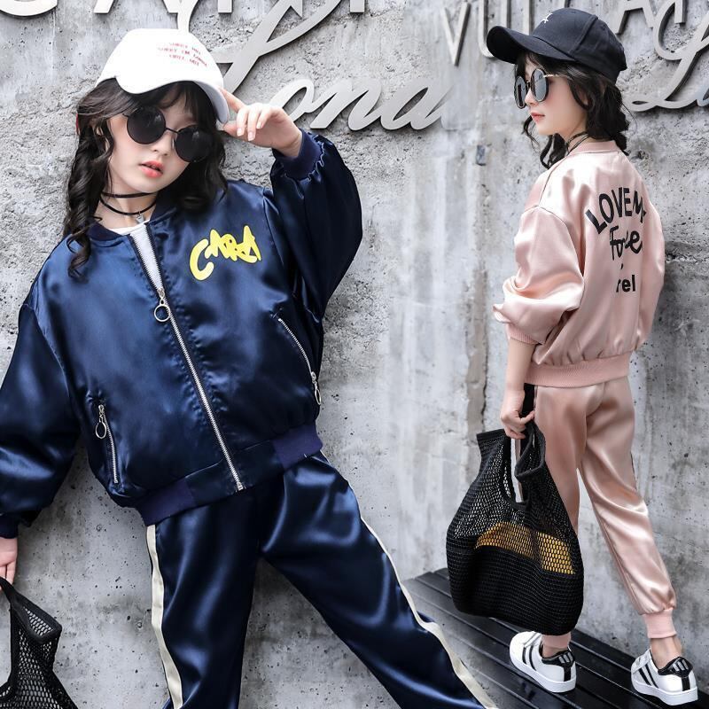 新作 1112年キッズメタル服スーツティーンガールズ秋の子供の手紙ツーピースセットトラックスーツスポーツウェア