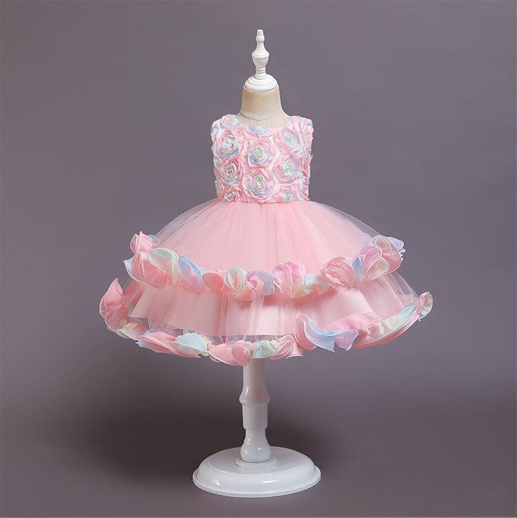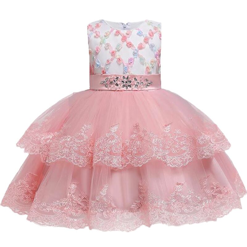 新作 女の赤ちゃんフラワー刺繍パーティーチュチュドレス子供キッズChirstmasウェディングボールガウンVestidos