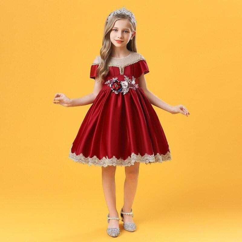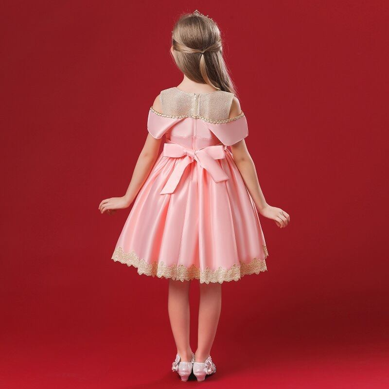 新作 PLBBFZキッズドレスワンショルダーイブニングドレス女の子子供服フラワーパーティードレスガールガウン