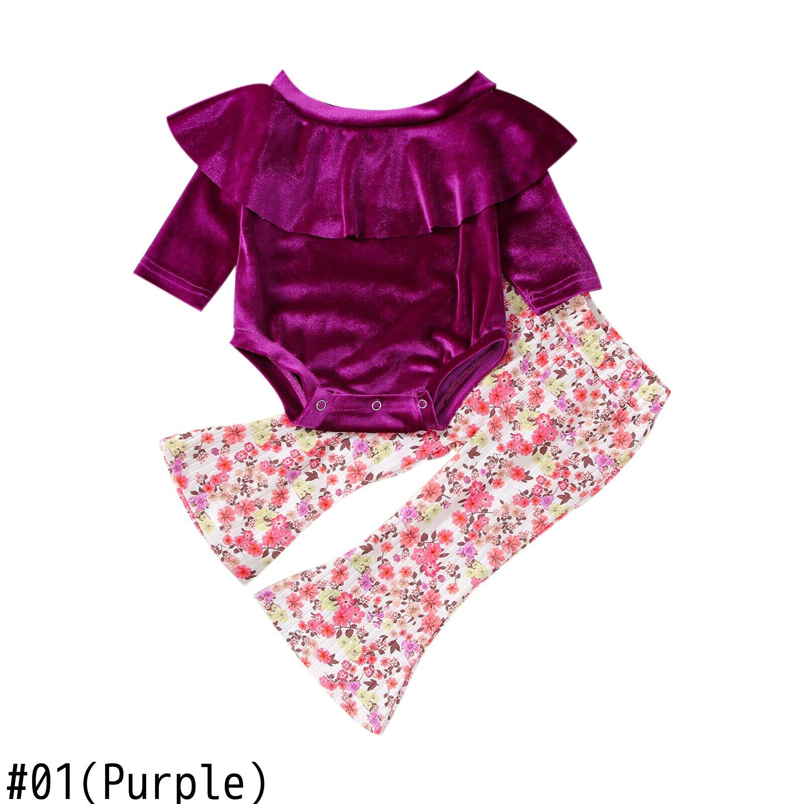 新作 Ma&Baby0-24M生まれの幼児用ベビーガールズ洋服セットベルベット長袖ロンパースフローラルパンツ衣装秋春