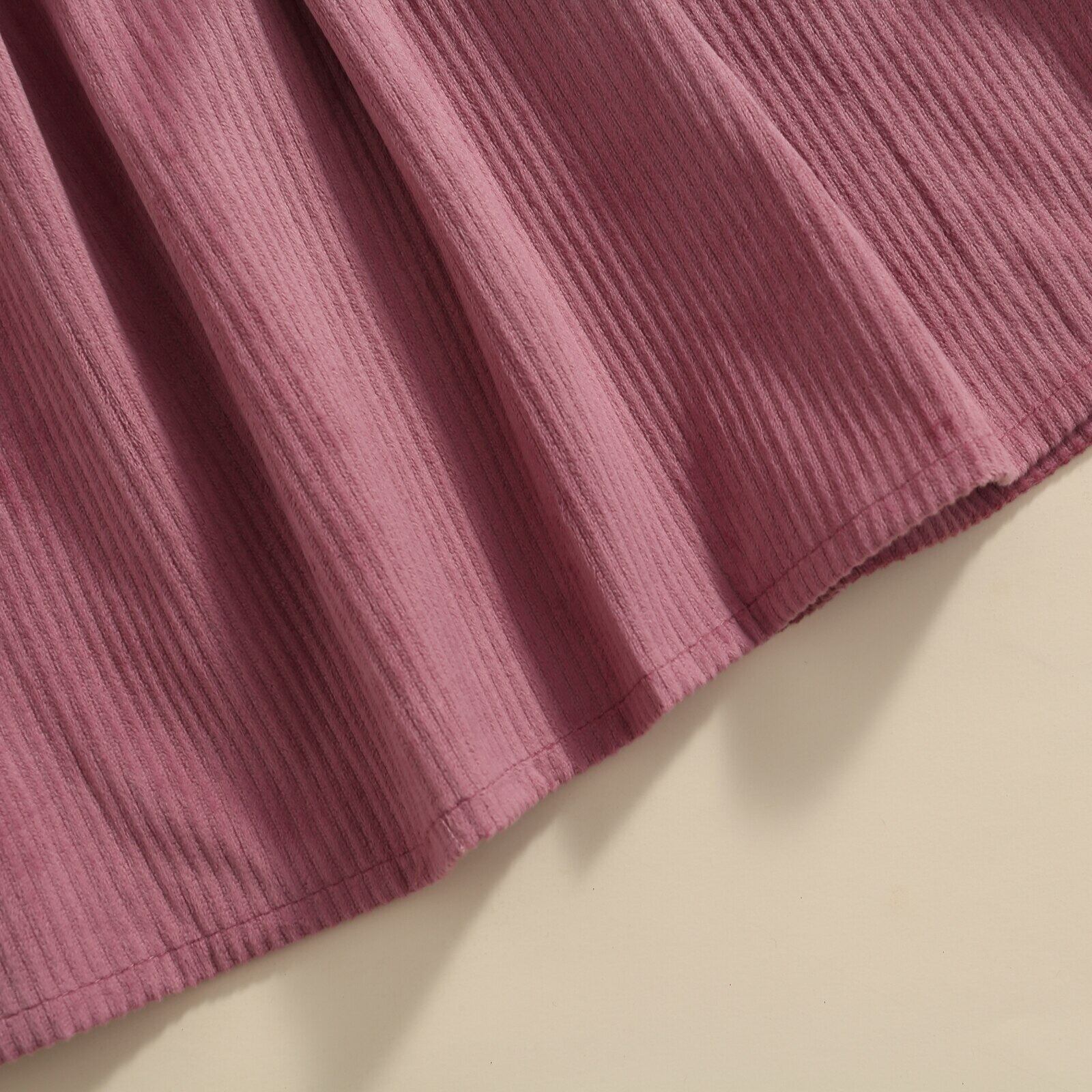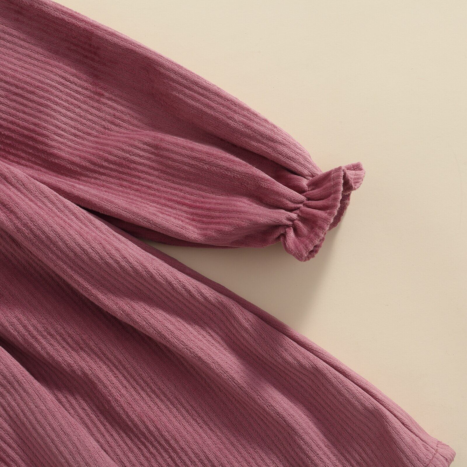 新作 女の赤ちゃんのドレス長袖フリルネックウエストボタン無地ルーズパーティーコーデュロイミディドレス