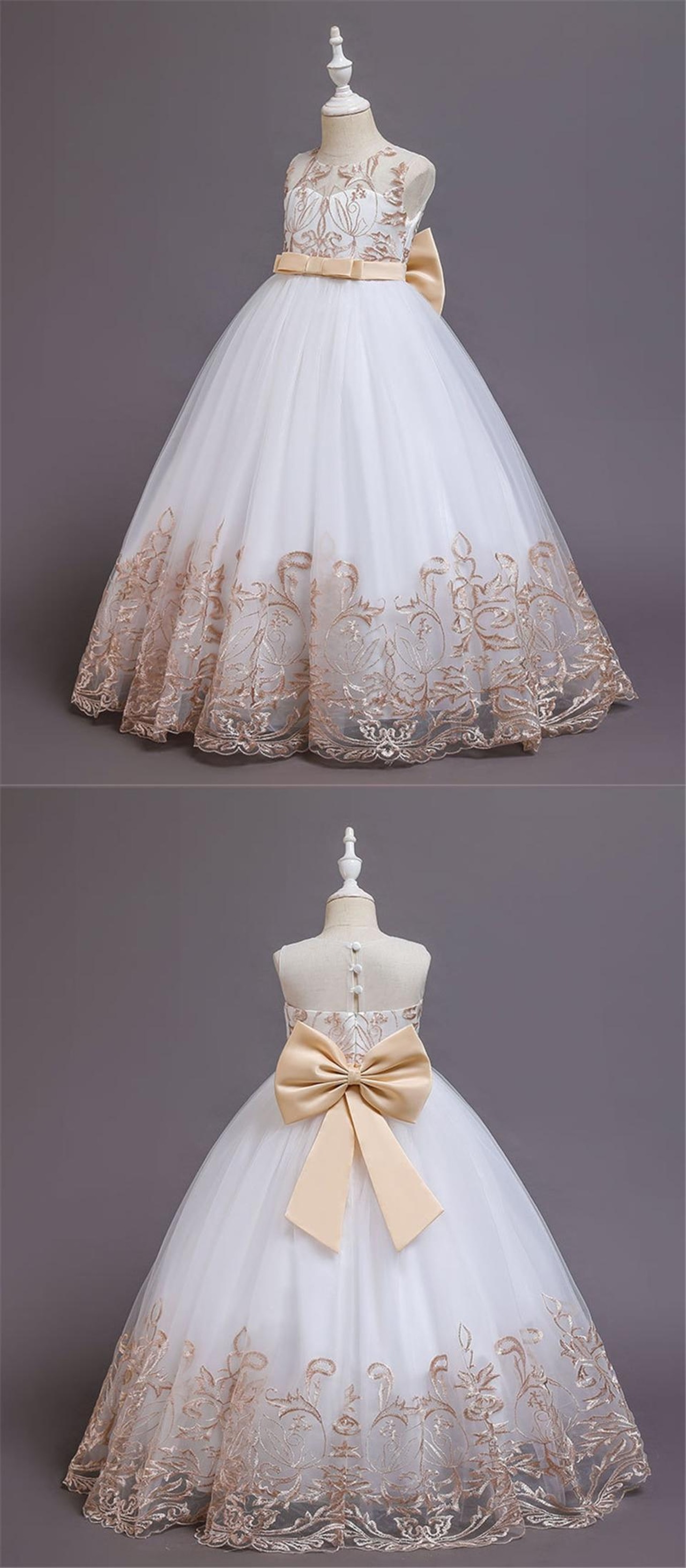 新作 フラワーガールシャンパンマルドレスウェディングパーティーキッズ刺繍ページェントフロック子供花嫁介添人床の長さのボールガウン