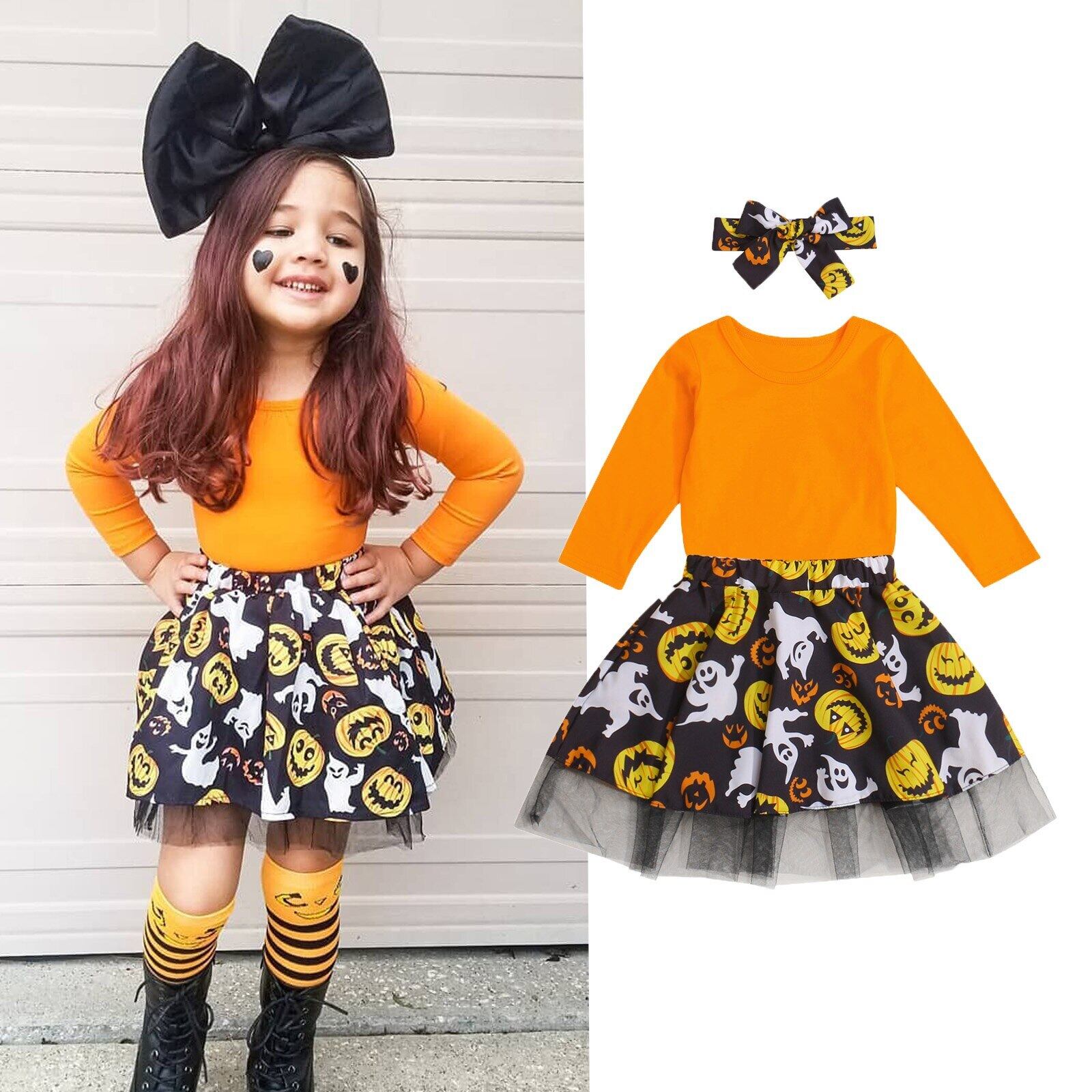 新作 Ma&Baby 6M-5Ys幼児生まれの赤ちゃんキッドガールズパンプキン衣装長袖TシャツTutuSkrits DD40