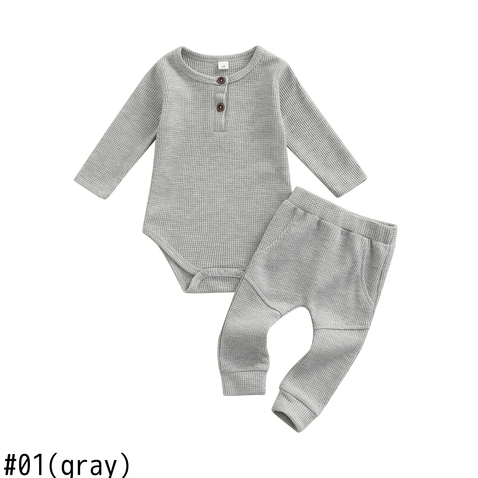 新作 Ma&Baby0-24M生まれの幼児男の子女の子服セット無地長袖ロンパースパンツ秋春服D84