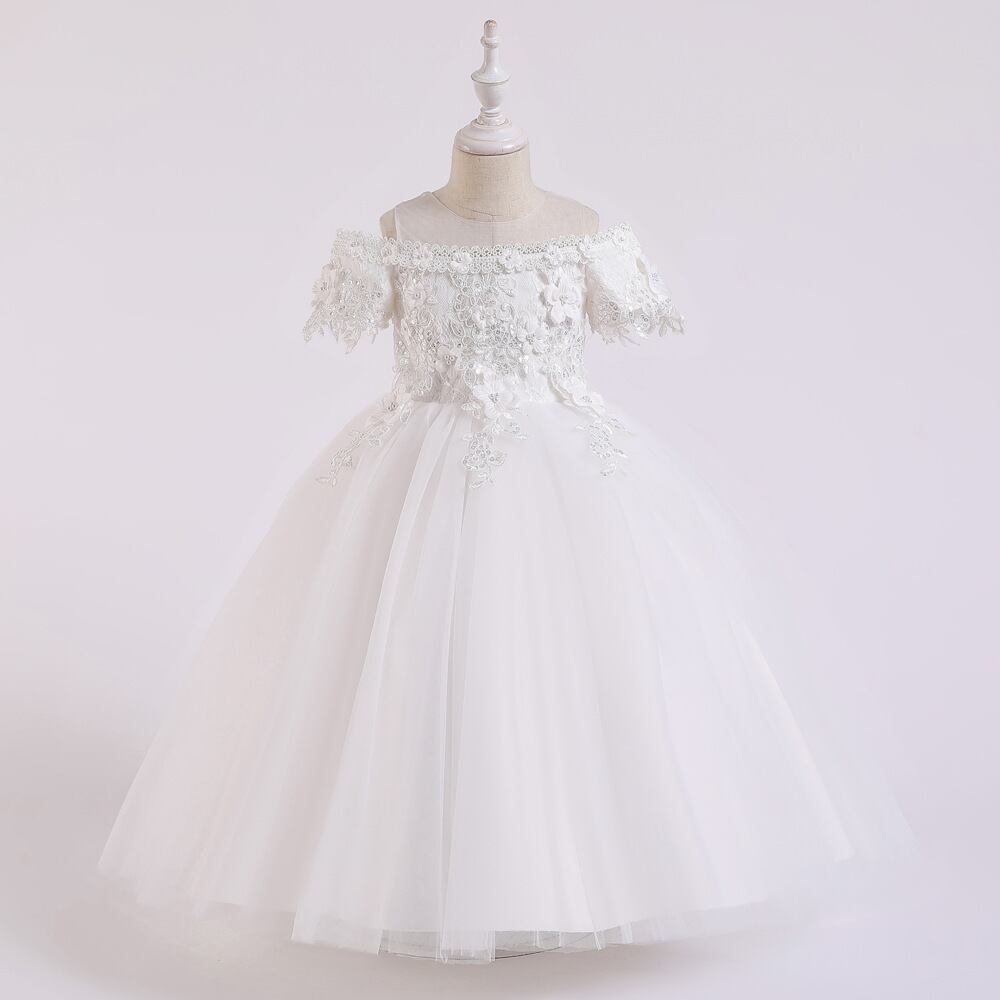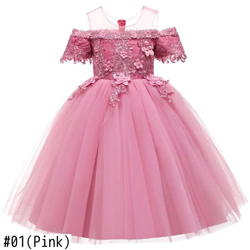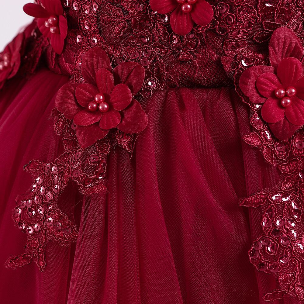 新作 女の赤ちゃんレースフラワーロングパーティードレス子供キッズボールガウンドレス年ChirstmasVestidos