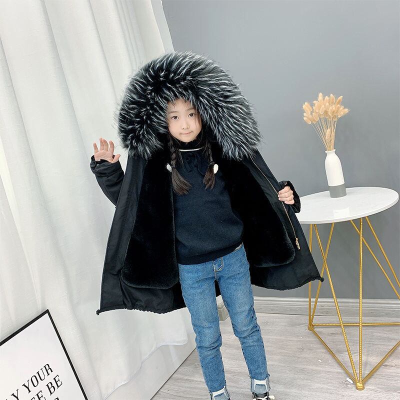 新作 -20度46 8 1012歳子供キッズ女の子毛皮フード付きコートアウター2021年冬ジャケットロングパーカー厚く暖かい服装