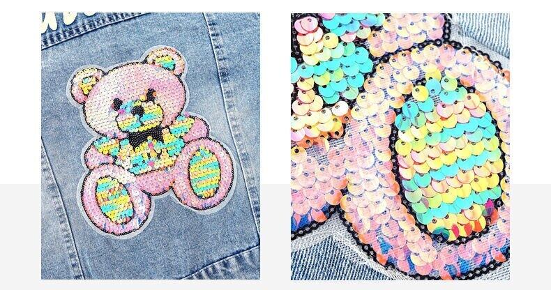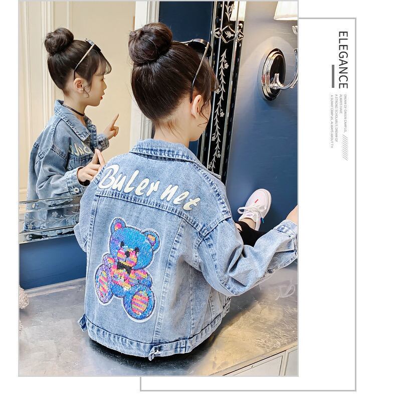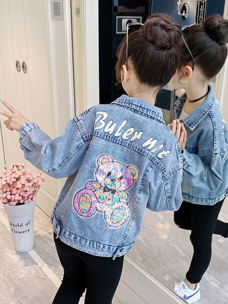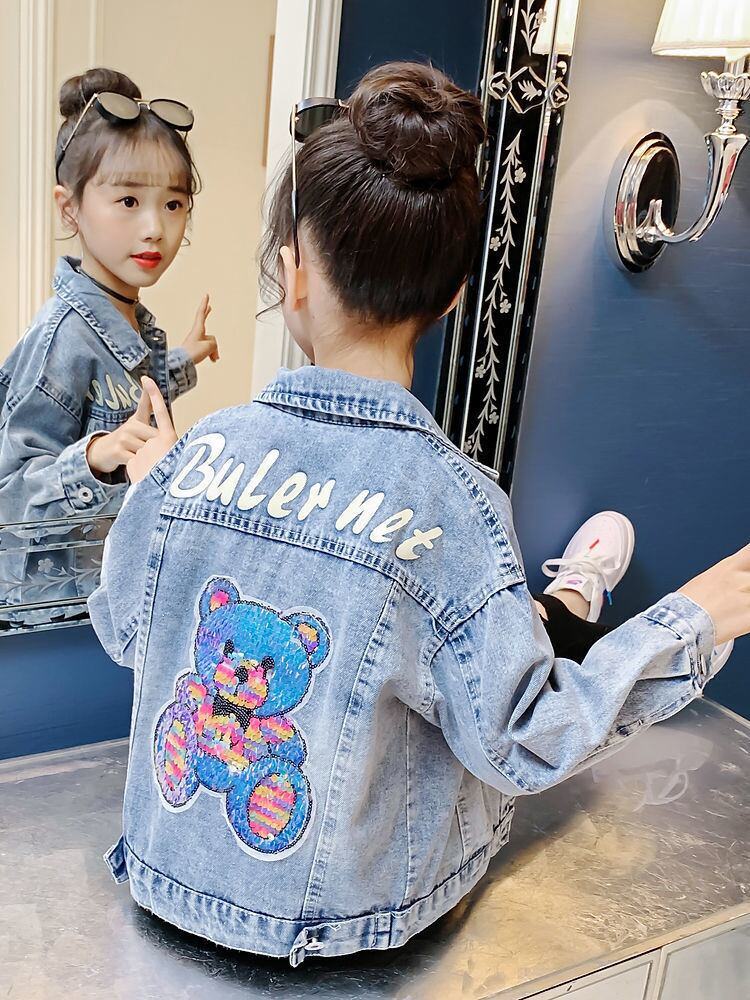 新作 ガールズデニムジャケットウインドブレーカーキッズスパンコールアウター春布コート防風ガールジャケット46 8 1112年