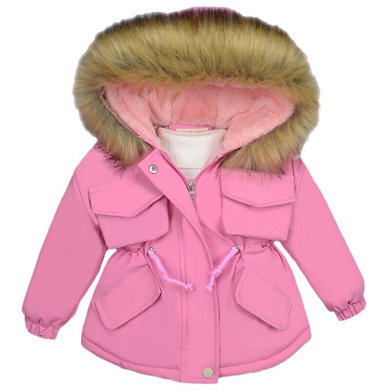 新作 ガールズウィンターウォームシックファーカラーフーディージャケットコートアウターキッズキッズクリスマスオーバーオールコットンパッド入りアウターウェア