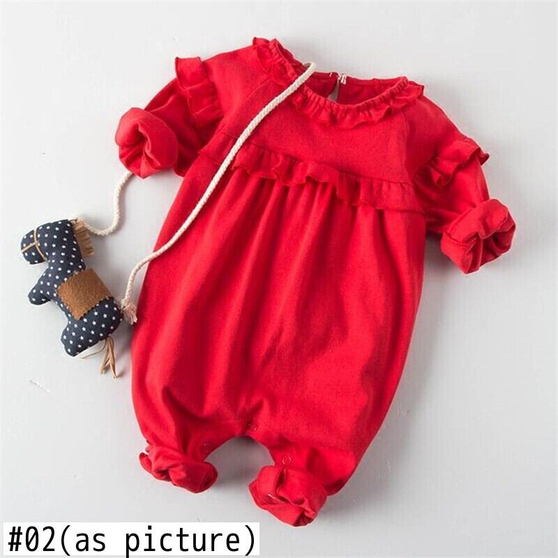 新作 生まれたロンパース幼児ベベソフトコットン生まれた赤ちゃんの女の子フリルジャンプスーツ秋ロパデベベバロン1日誕生日スーツの衣装