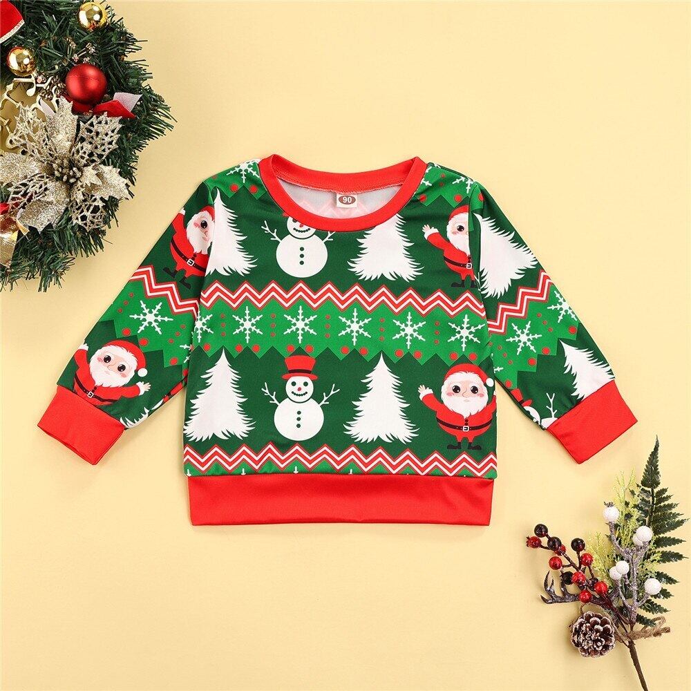 新作 クリスマスキッドガールボーイセーターニットニットシャツ長袖ラウンドネッククリスマスエルク/スノーマンルーズプルオーバーフォールトップス