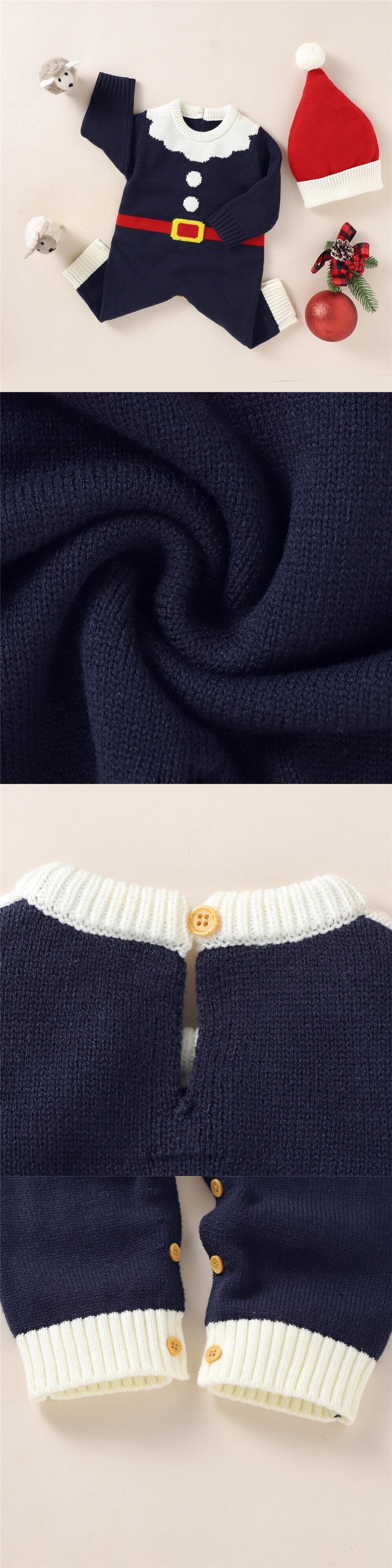 新作 2pcs秋冬ベビーガールズボーイズクリスマスロンパースハット0-18Mパッチワーク長袖ニットセータージャンプスーツ