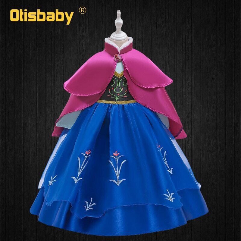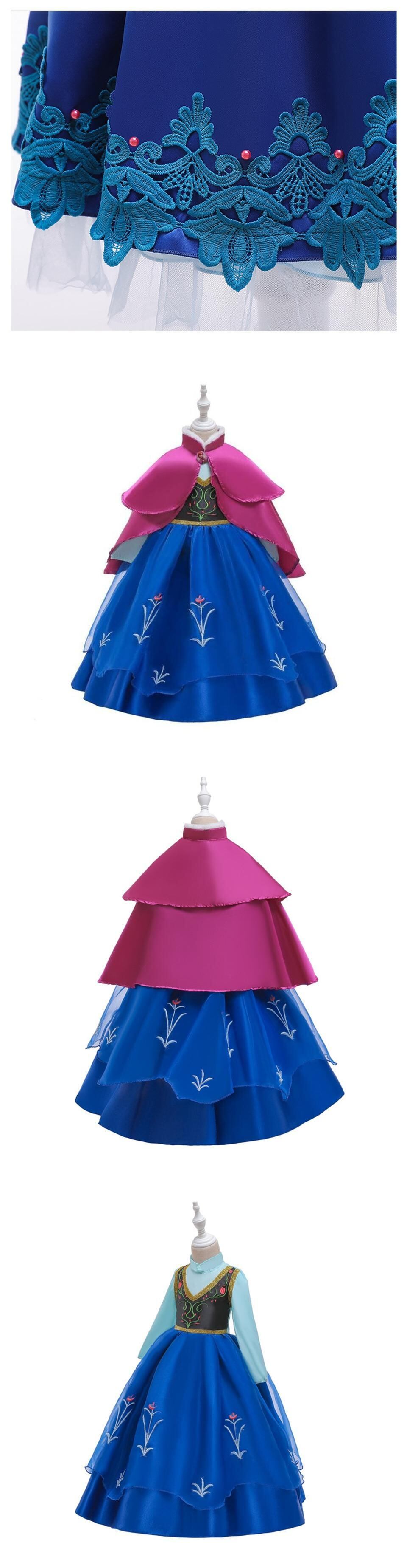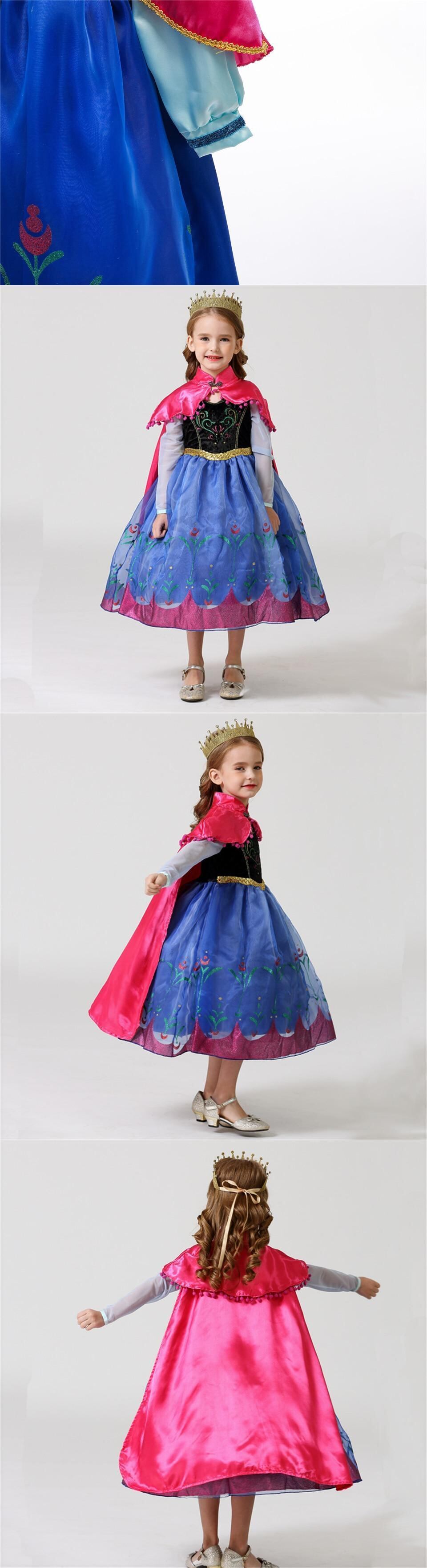 新作 女の子の誕生日アンナキッズ長袖フローラルラッシュドレス雪の女王カーニバルアンナコスプレチャイルドローブ