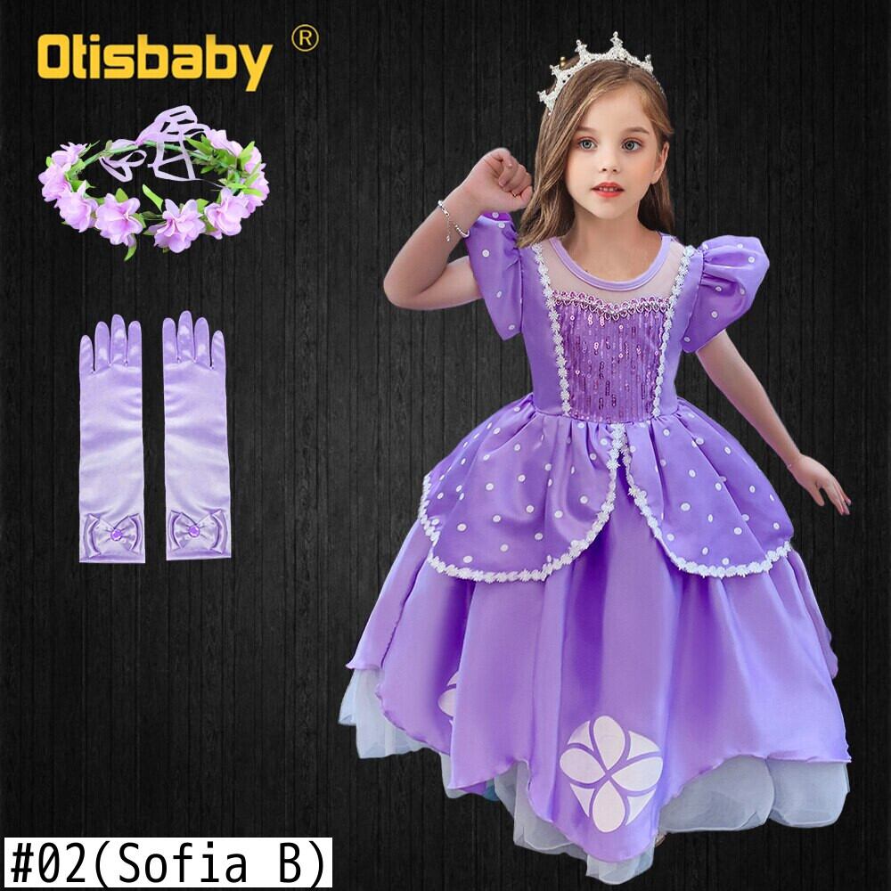 新作 サマーパープルガールズソフィアドレスエルザラプンツェル幼児結婚披露宴ロングドレスパフスリーブウエディングドレス