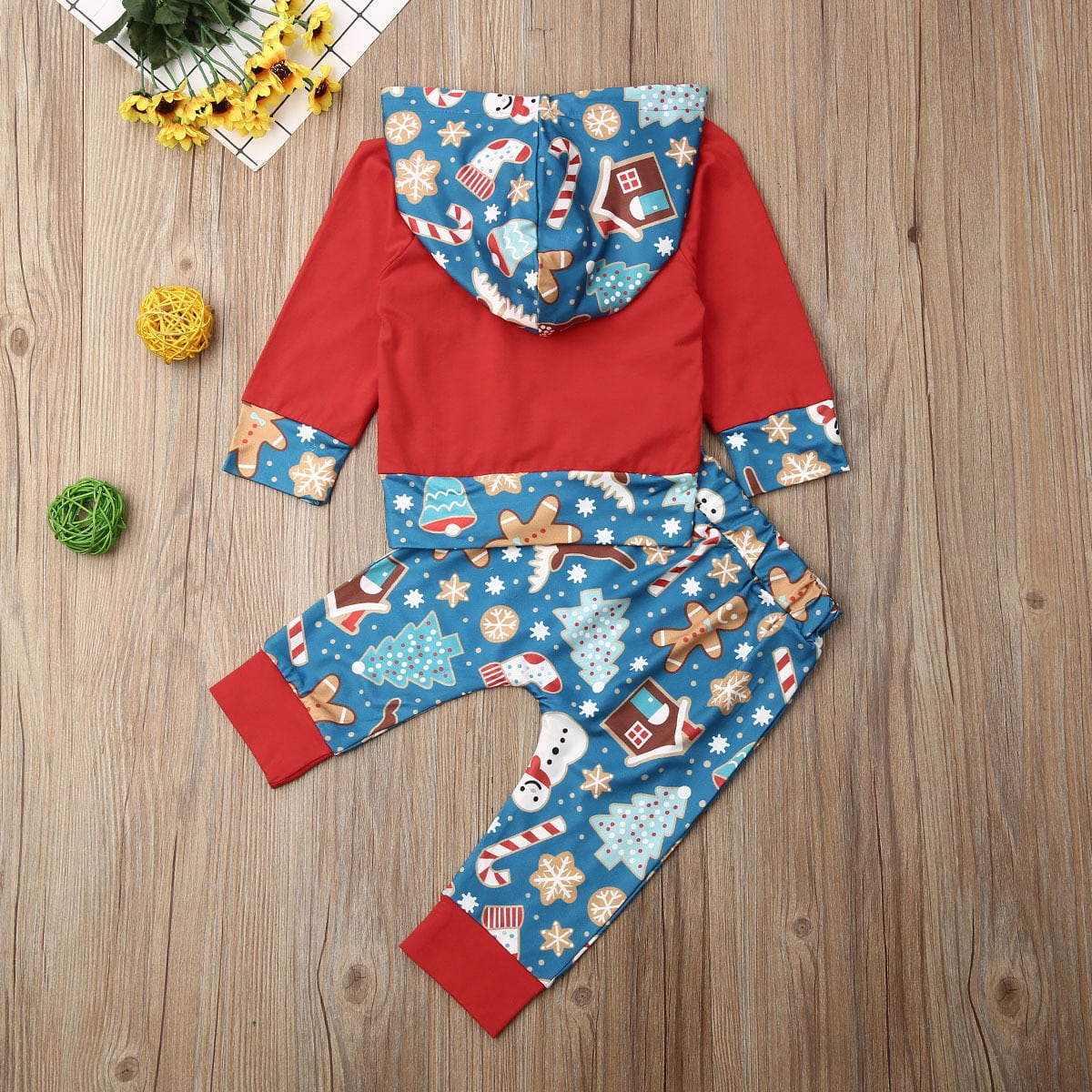 新作 0-3Yクリスマスベビー服セットInfnat幼児生まれの男の子女の子フード付き長袖トップスパンツ漫画鹿クリスマス赤ちゃんs