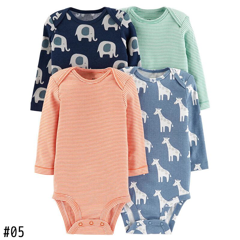 新作 4pcsベビー長袖ボディスーツ男の子ボディスーツ新生児ボディ服2021秋ユニセックス新生児セット冬綿ファッションo-n