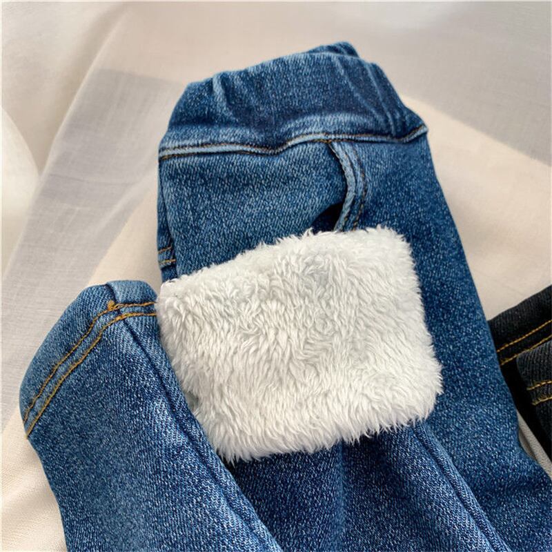 新作 2-8年ジーンズベビーガールズ子供ジーンズ弾性ウエストデニム厚くソリッドパンツズボン女の子子供服