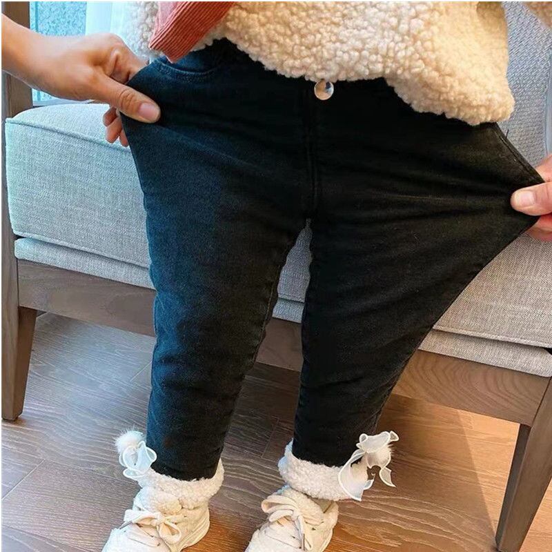 新作 2-8T年ジーンズベビーガールズ子供ジーンズ弾性ウエストデニム厚手のパンツキッズズボンガールズキッズ服