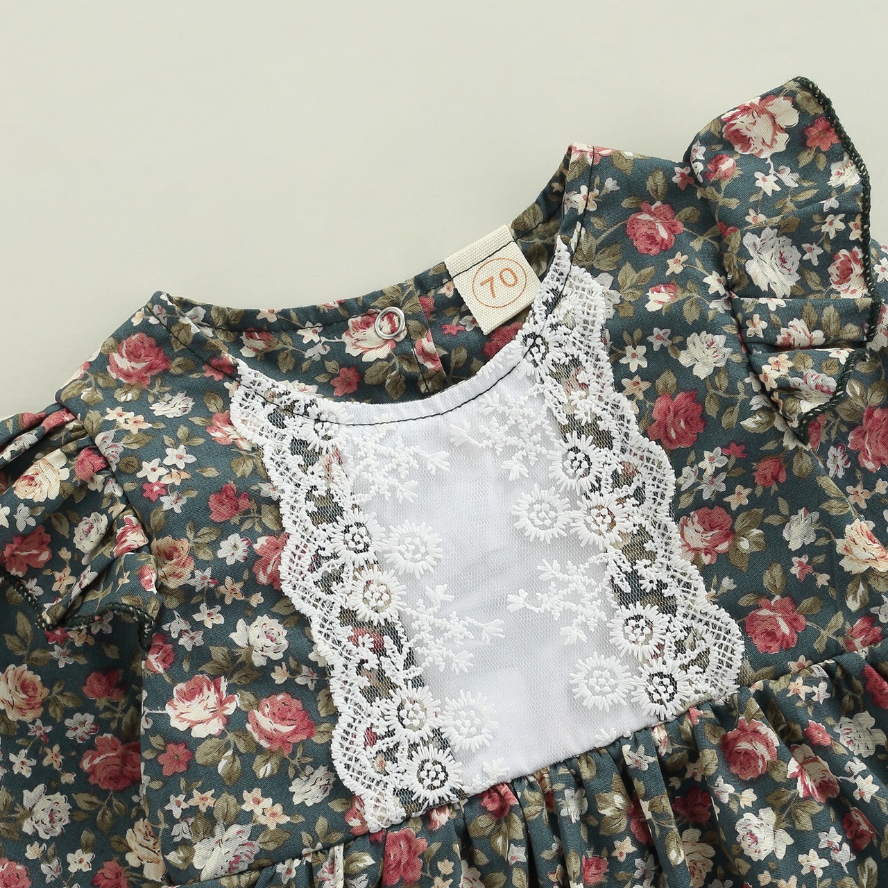 新作 Ma&Baby 3-24M Infant Baby Girls Ruffles Romper Vintage Floral Lace Jumpsuit Autumn Spring Baby Girl s D11