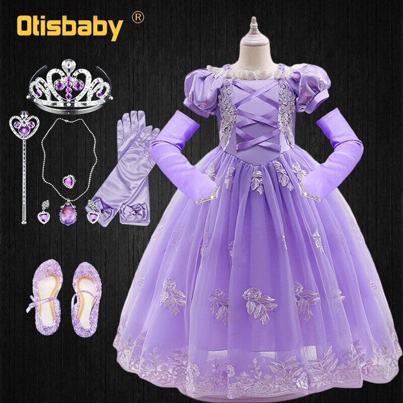 新作 子供のレースの花ソフィアドレス女の子の誕生日パーティーパフスリーブキッズソフィアセレモニー
