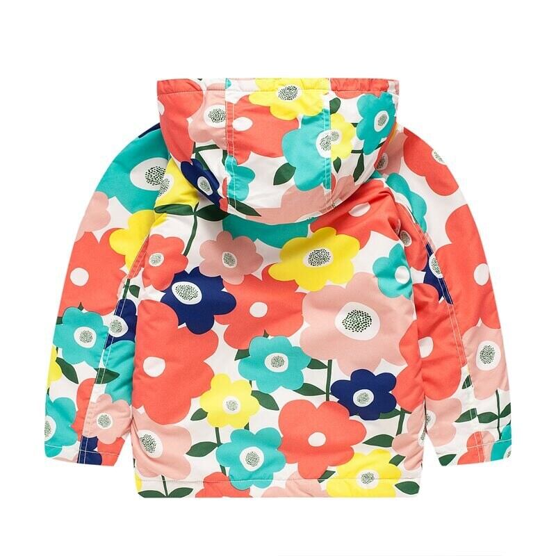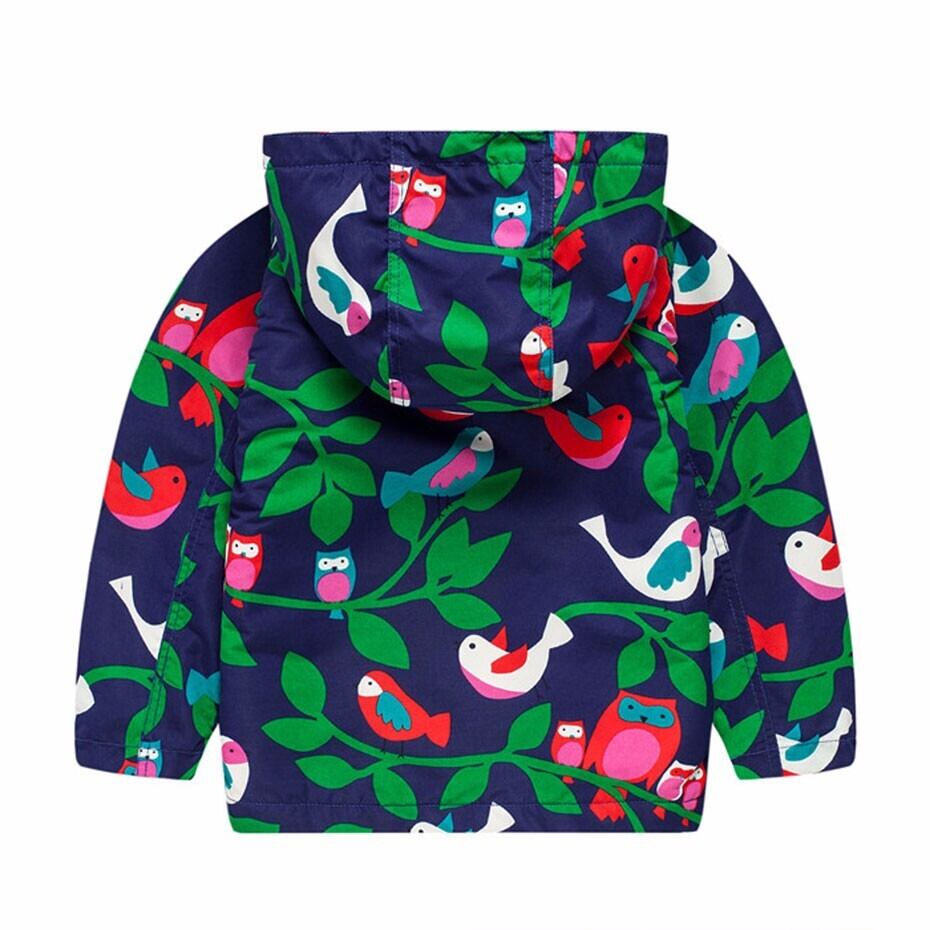 新作 ガールズオータムジャケットコートバードプリントチャイルドウインドブレーカージャケットコットンマイクロフリースウォームジャケットキッズフード付きコート