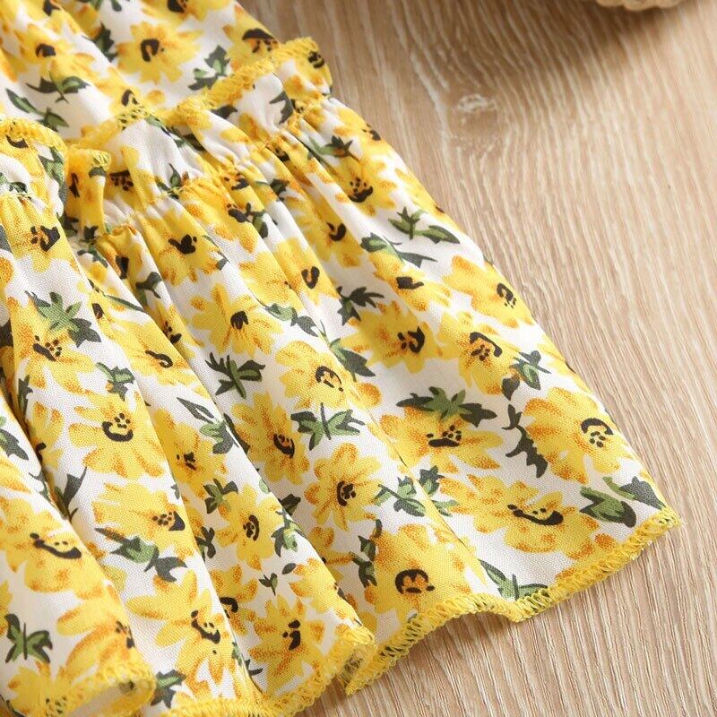 新作 1-6Yサマーキッズガールズホリデードレスベルトフラワープリントフリルノースリーブ膝丈Aラインサンドレス
