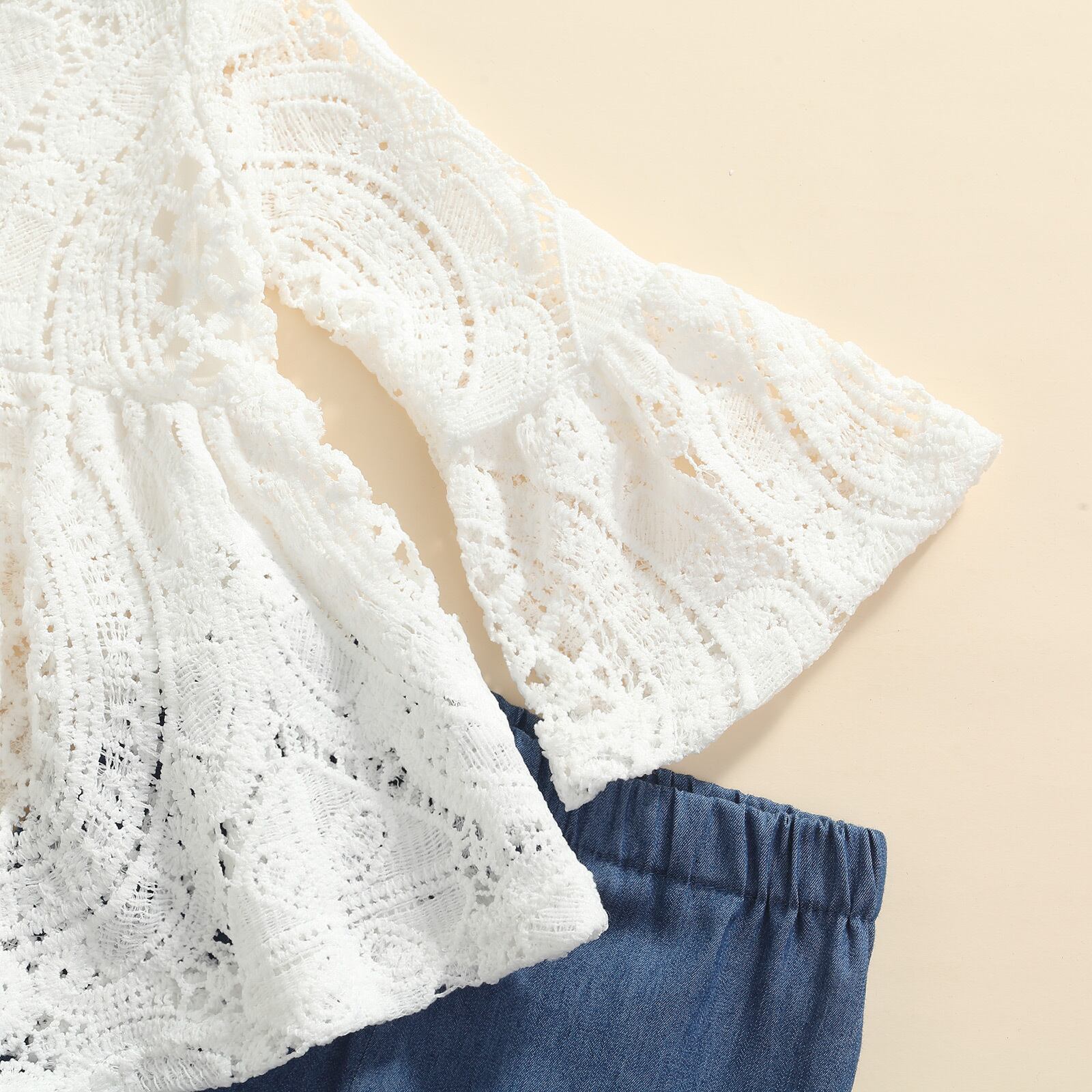 新作 Ma&Baby1-5Y幼児キッドベビーガールズ洋服セットレース長袖トップスフレアパンツ衣装子供ガールズ秋DD88