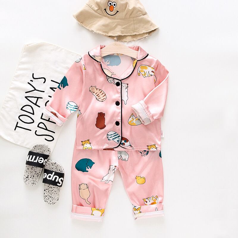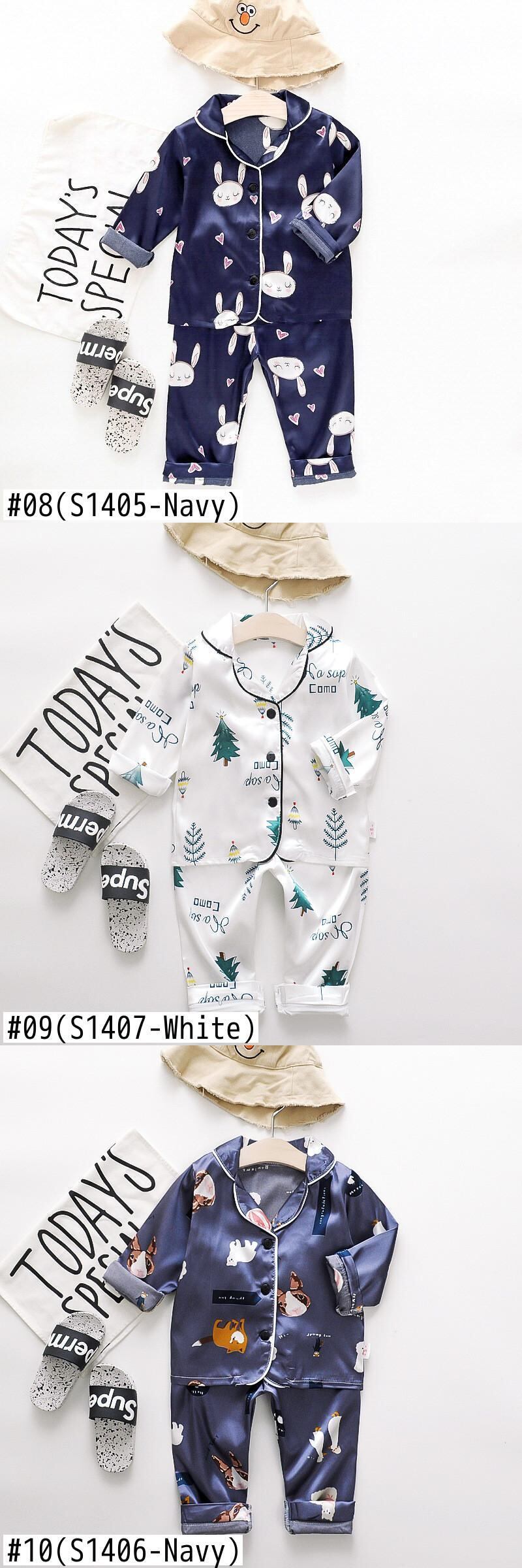 新作 ベビーボーイズガールズソフトステインテディベア漫画プリントパジャマ服セット幼児キッズ長袖スリーピングウェア