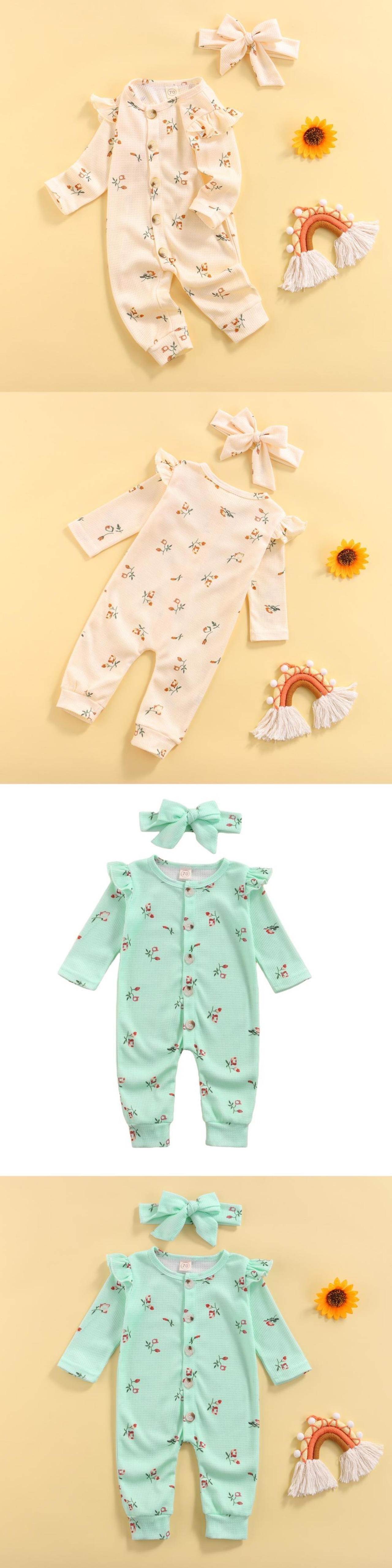 新作 Ma&Baby3-18Mフローラル生まれの幼児ベビーガールジャンプスーツ長袖ボタンロンパース秋春プレイスーツDD88