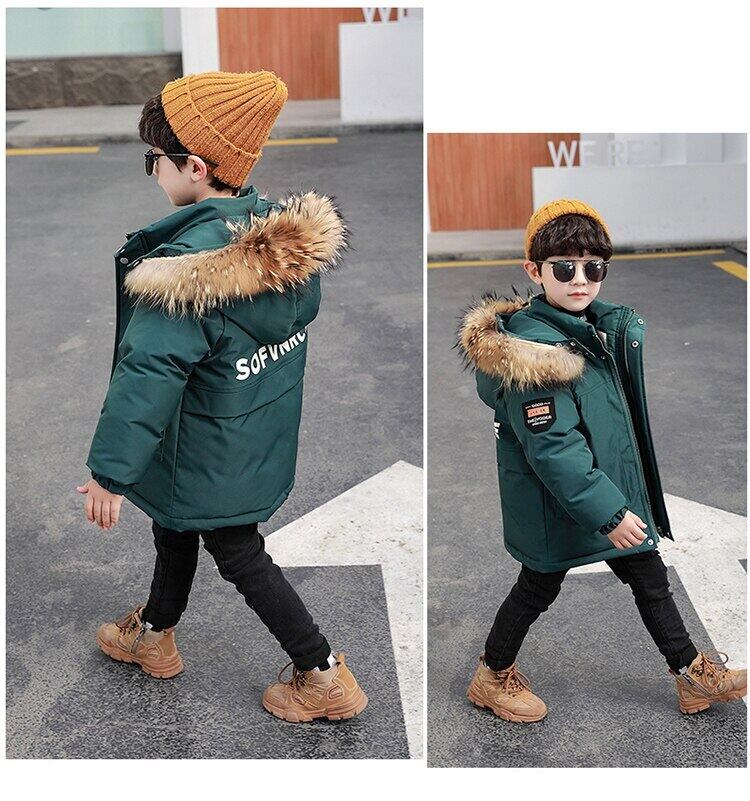 新作 男の子の冬のコート2021年子供用ファーフード付きジャケット幼児用コットンロングパーカーボーイズジッパーの衣装23 4 5 6 78年