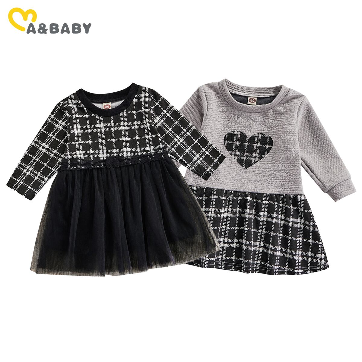 新作 Ma&Baby9M-3歳幼児キッドベビーガールズチェック柄ドレス長袖チュールツツパーティードレスガールズバースデーD11