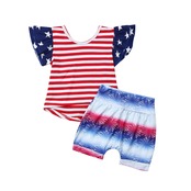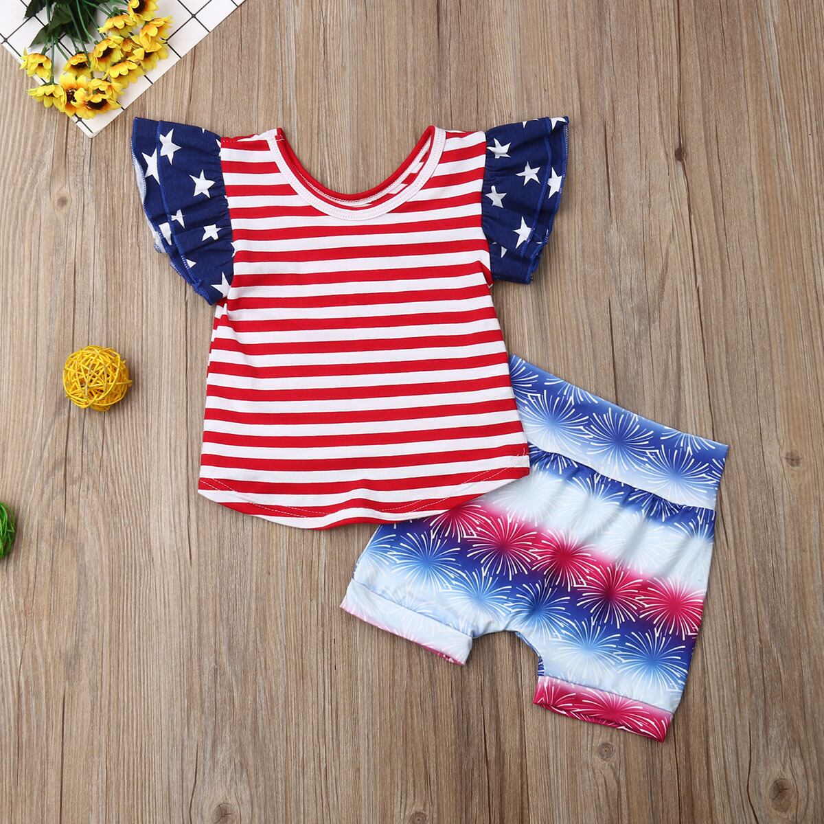 新作 夏の幼児生まれの女の赤ちゃんセットTシャツ+ショートスター&ストライプの女の赤ちゃん独立記念日