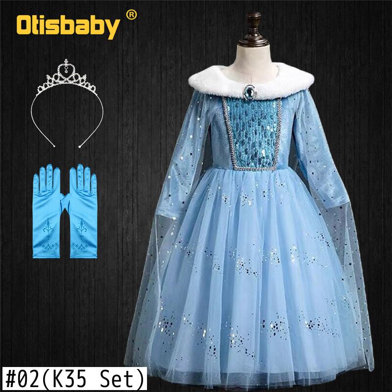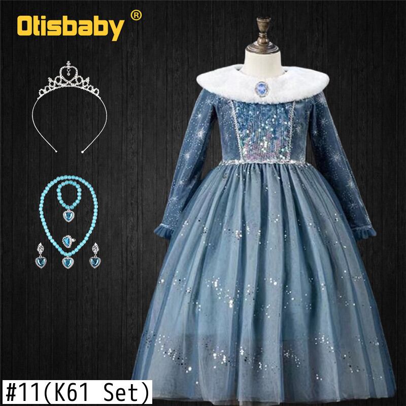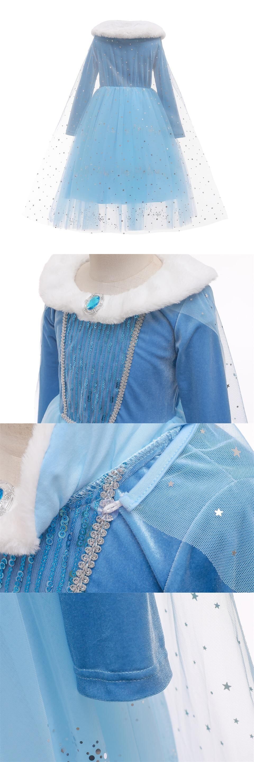新作 冬の子供のファンタジアぬいぐるみラペル雪の女王エルザドレスアップクリスマス長袖の女の子