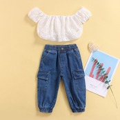 新作 Ma&Baby1-5Y幼児キッドガールズ洋服セットレースクロップトップデニムパンツジーンズ衣装サマーチルドレンsDD88