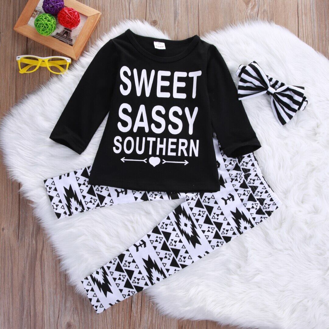 新作 3個/セットAutumn2016キッズセット服1個ヘアバンド+1個シャツ+1個パンツ子供用セット女の子服スーツ