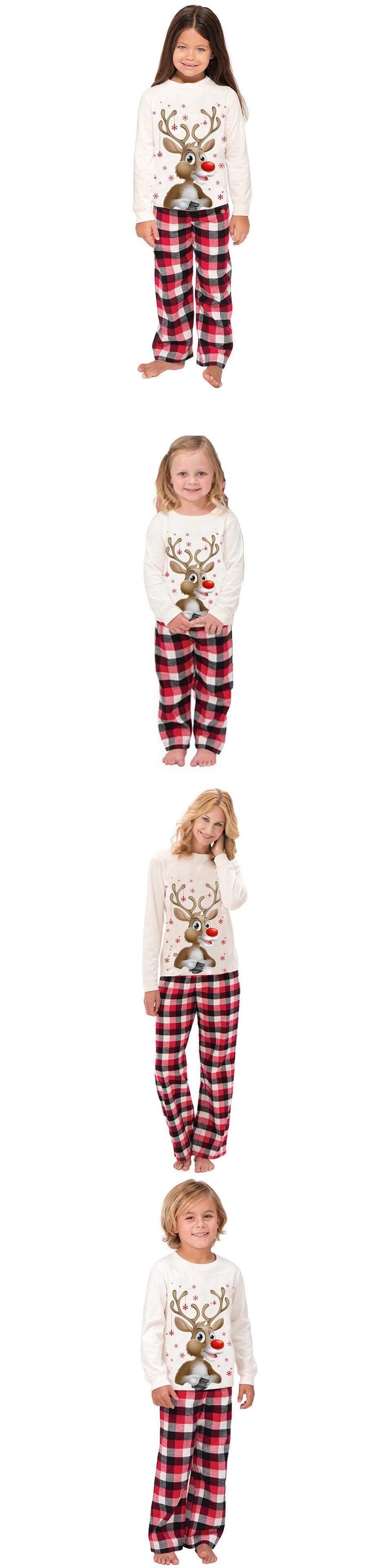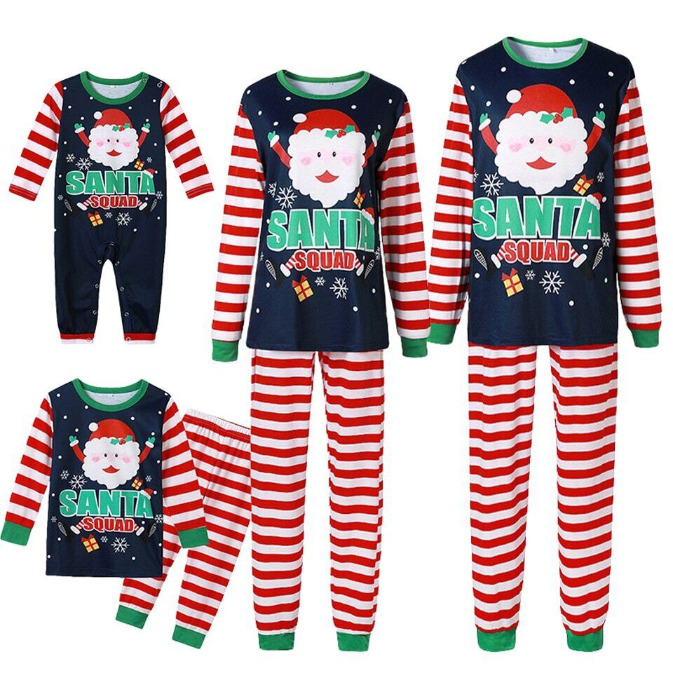 新作 冬の綿の家族のマッチングクリスマスパジャマ漫画サンタクロースプリントTシャツストライプパンツボーイガールパジャマセット